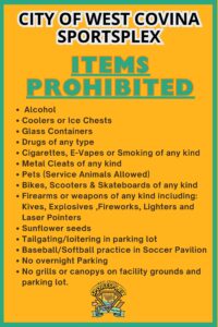 Additional NoteMETAL CLEATS ARE NOT ALLOWED AT WEST COVINA SPORTSPLEX
