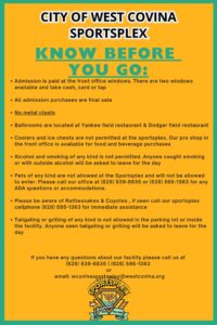 | West Covina Sportsplex | 2100 S Azusa Ave, West Covina, CA, 91790 | Open in Maps |