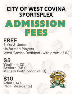 West Covina Sportsplex | 2100 S Azusa Ave, West Covina, CA, 91790 | Open in Maps |